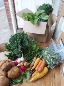 We have, however, used our growing number of volunteers (we grew from 15 to 43 active volunteers to date) to help us keep The Village Hub open during the 3rd lockdown when schools shutting severely affected the ability of Karen, Jade, and Diane to man The Hub alone. We have made links with the local Food Aid Network and currently are supplied by Fareshare to support a Community Larder of tinned and packaged food and surplus vegetables. Currently we have supported over 260 visits to the larder. We also struck up a partnership with Good Earth Growers, a local organic farmer who provides us with low-cost high-quality vegetables that we pass onto the local community. We distribute boxes of veg at cost and display loose veg on a pay as you feel honesty shelf outside our building. We recover 50% of the costs of the honesty shelf from local people and the balance is covered by a small food grant we received from Plymouth City Council.