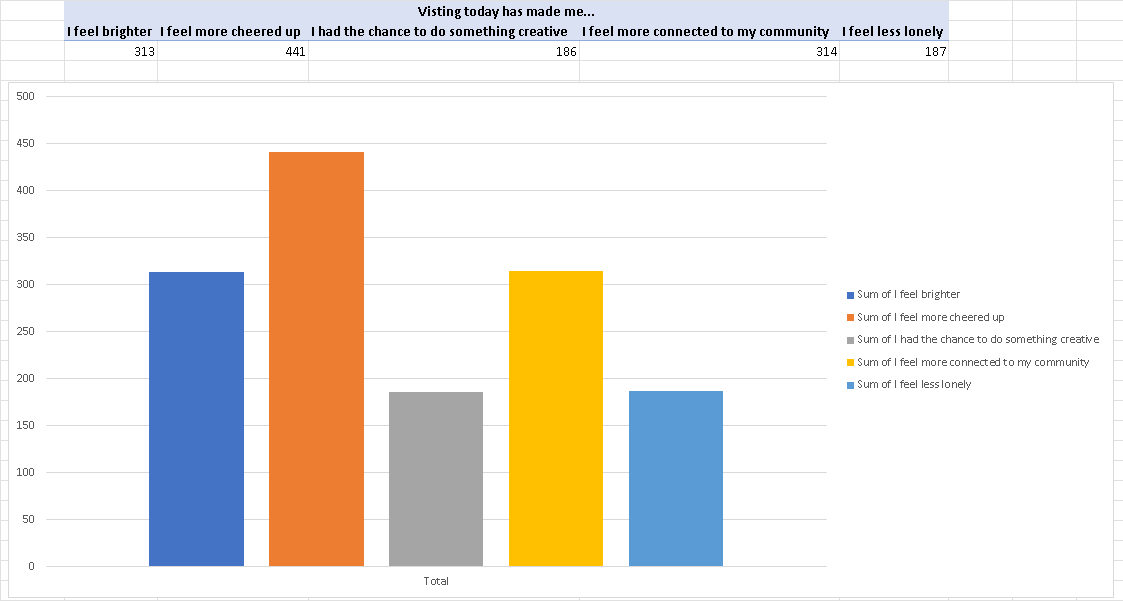 Over the past 12 months we have been collecting data from those who have visited The Village Hub. Although not everyone completes the feedback form, much of the data we have collected can be seen below.